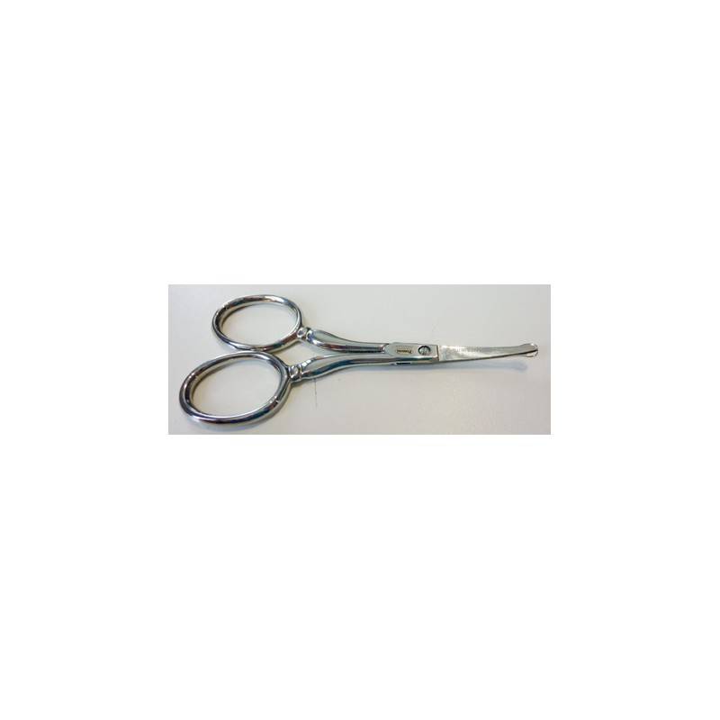 Forbici di qualità in acciaio e finitura nichelata. Modello con punte arrotondate perfette per peli del naso e delle orecchie. La perfetta forma tonda le rende adatte al taglio delle unghie di neonati e bambini.