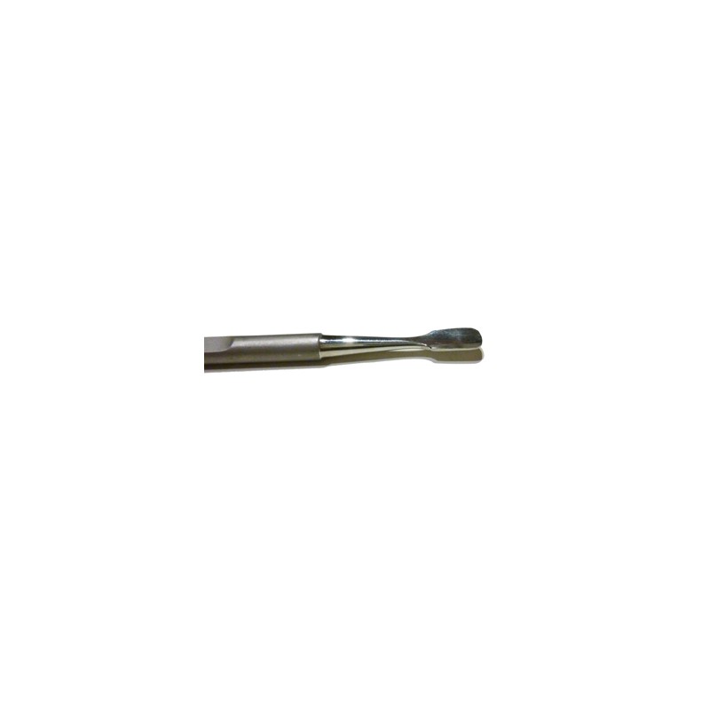 Prodotto in acciaio inox 420 temprato. Lavorato con macchine CNC, rifinito e lucidato manualmente. Ferretto doppio uso composto da due estremità. Un’estremità a cucchiaio viene utilizzata per spingere con facilità le pellicine, l’altra estremità appuntita è adatta alla pulizia sotto le unghie o per eliminare i residui di smalto o gel. Per uso domestico e professionale.