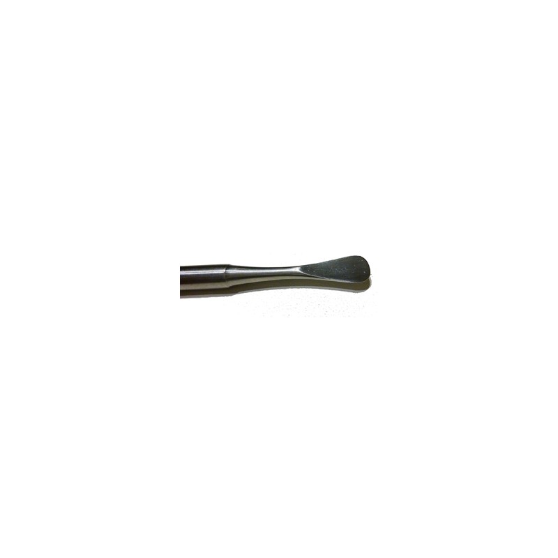 Prodotto in acciaio inox 420 temprato. Lavorato con macchine CNC, rifinito e lucidato manualmente. Ferretto doppio uso composto da due estremità. Un’estremità a cucchiaio viene utilizzata per spingere con facilità le pellicine, l’altra estremità ha la parte arrotondata affilata. Per uso domestico e professionale.