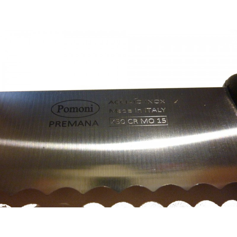 Coltello professionale da cucina per pane e prodotti da forno in acciao inox con cromo molibdeno e vanadio.