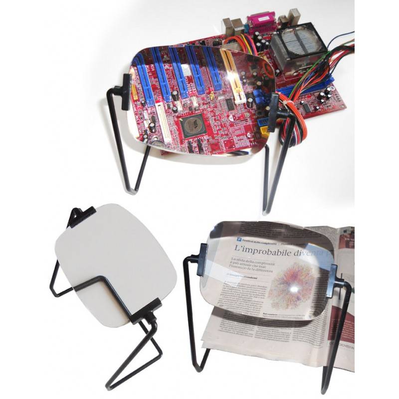 Ottima lente di qualità su tutta la superficie. Robusto supporto in metallo. Grazie al supporto può ruotare a 360° ed essere posizionata secondo l'inclinazione più comoda. Adatta per leggere e per lavorare con le mani libere.