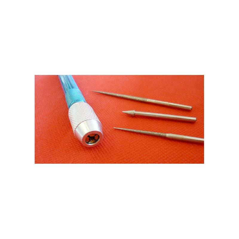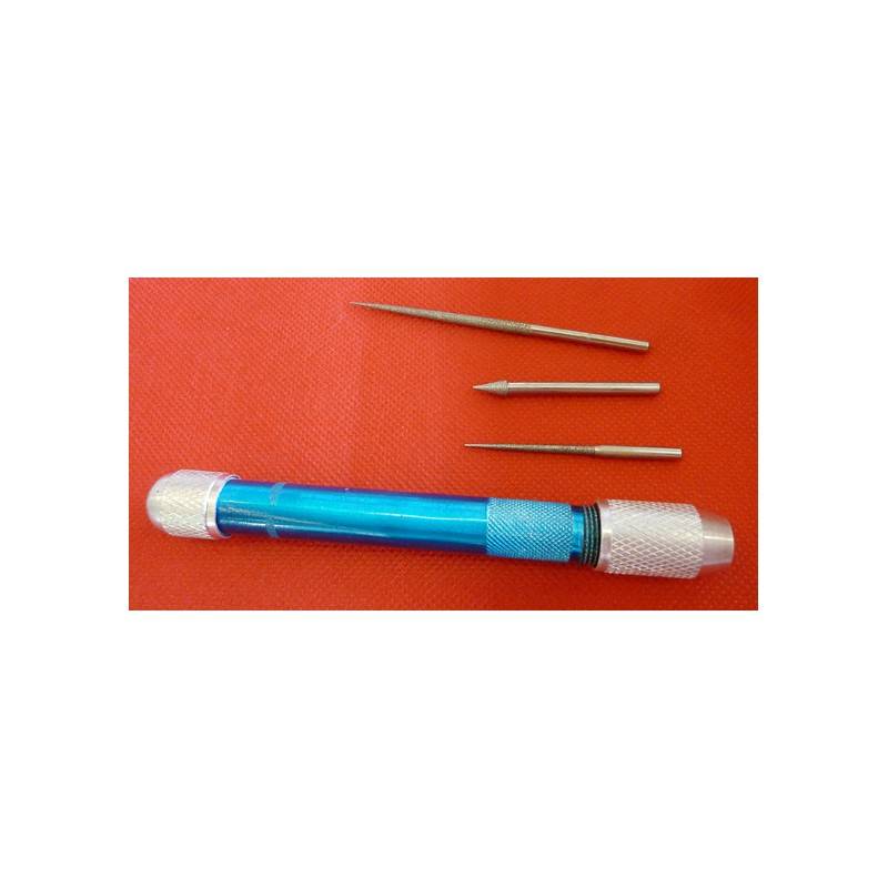 Attrezzo multiuso. Può essere usato per montare punte e frese oppure altri utensili che necessitano di impugnatura come micro lime. Trova impiego anche nel settore orafo per rifilare e allargare fori. Ad esempio per pulire il foro interno di perle e pietre.