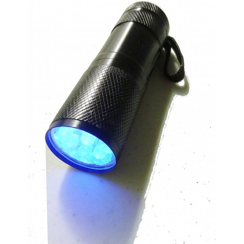 Torcia con luce ultravioletta, ottima per filatelia, verifica banconote, documenti, mineralogia, restauro, colle, vernici e resine.