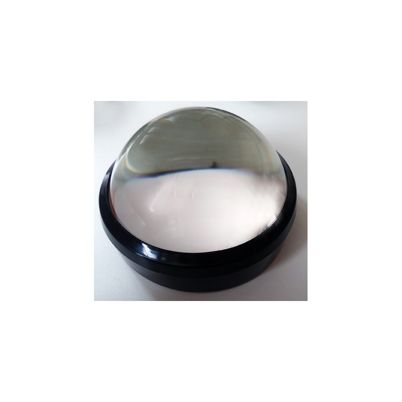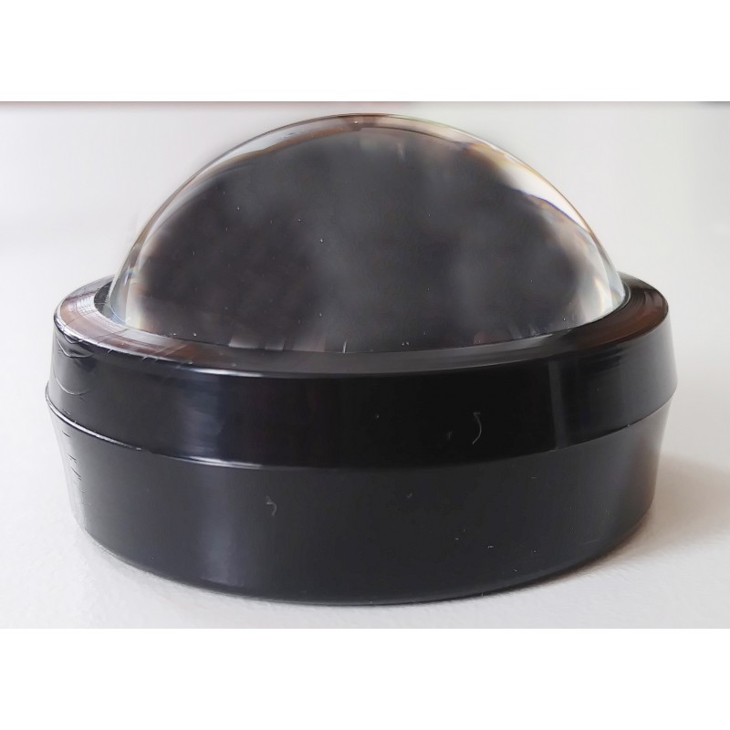 Lente mezza sfera in vetro di qualità con anello in plastica nero o bianco. Trova impiego nella visione di superfici come mappe, carte geografiche, filatelia, lettura di testi e caratteri, analisi di retini fotografici.