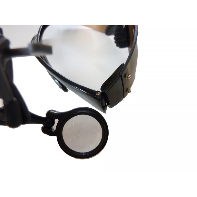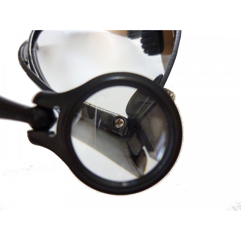 Lente snodata, può ruotare rispetto a tutti gli assi ed è agganciabile a tutti i tipi di occhiali con sistema basculante. Il meccanismo viene posizionato centralmente e la lente può essere spostata da un occhio all'altro.