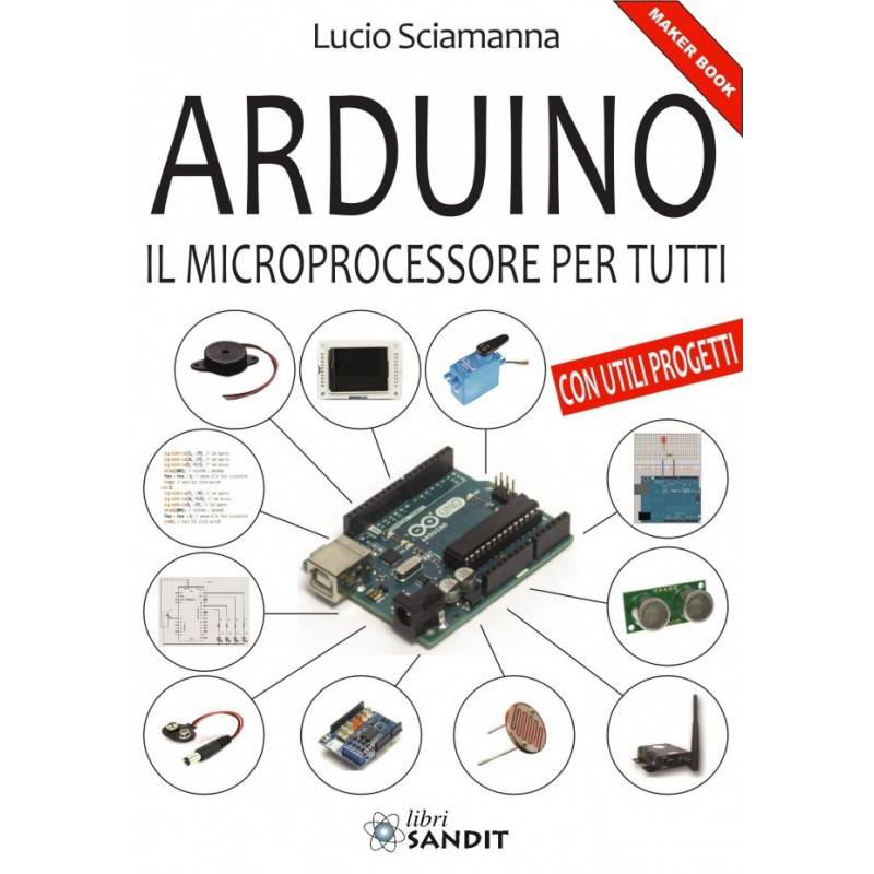 Arduino è diventata la piattaforma di programmazione a microprocessore tra le più famose nel mondo, ed è un’idea italiana. Se vuoi imparare ad usare Arduino per i tuoi studi, le tue invenzioni o i tuoi prototipi elettronici, realizzando progetti utili, con questo libro realizzerai: un Vu Meter a led; effetto luci polizia; effetto fuoco presepio elettronico; simulazione semaforo; come usare la USB per scambiare dati con il computer; usare i pulsanti per comandare gli apparecchi; misurare la temperatura; regolare la temperatura; accensioni luci con crepuscolare; come usare la tecnica PWM; realizzare un dimmer a led; creare i colori con i led RGB; generare suoni e semplici melodie; usare un display LCD; usare un servomotore; memorizzare dati in modo permanente con la EEPROM. Trovi anche la descrizione dei comandi software più utilizzati. Come funziona la scheda Arduino. Come costruirla da te. Cosa sono e come usare i pin di ingresso e di uscita. Come convertire i segnali dei sensori in numeri utili. Una lista delle schede di espansione shield e la loro utilità. Tutto spiegato con la massima semplicità per farti apprendere con il minimo sforzo.