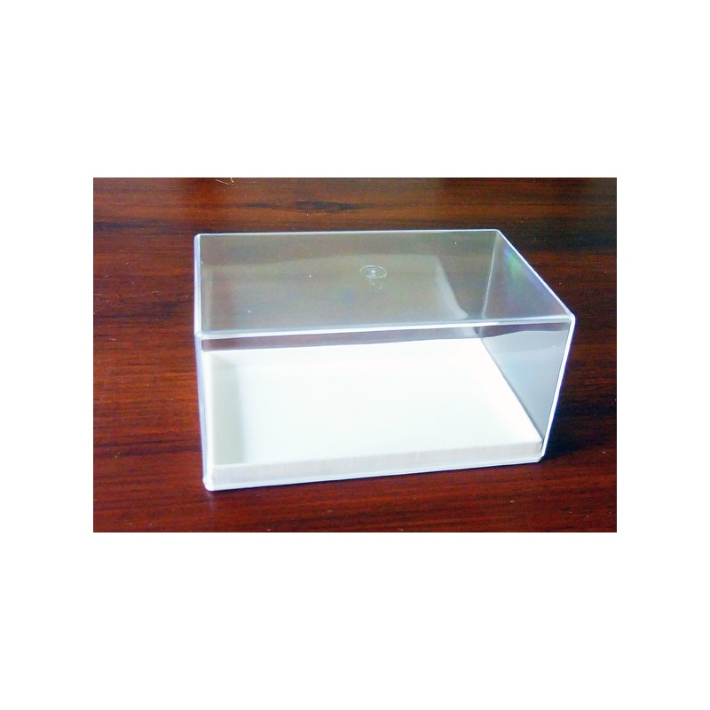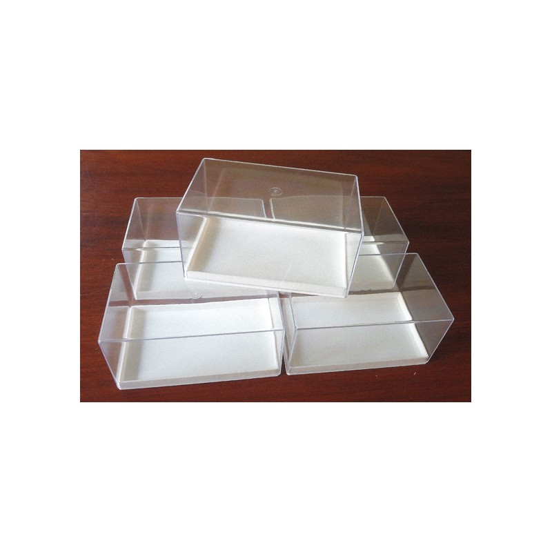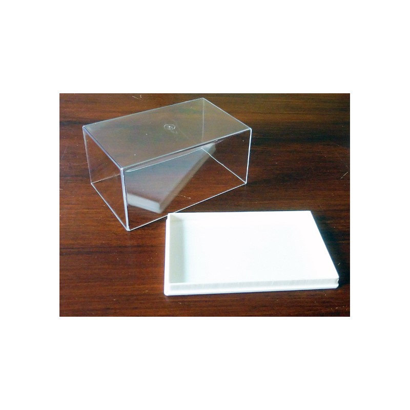 Scatole trasparenti in plastica per le vostre collezioni. Scatole rettangolari con base bianca