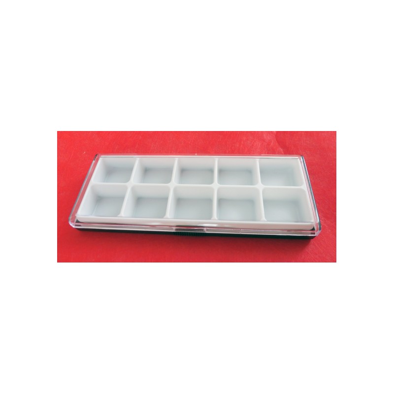 Ogni box è 27x24x14 mm per un totale di 10 caselle