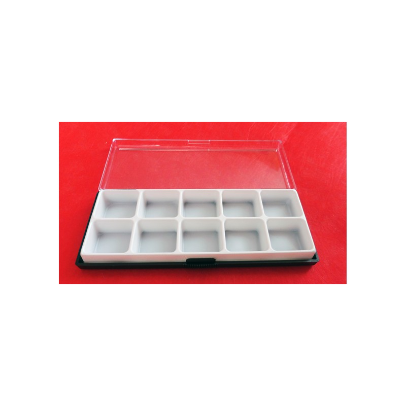 Comoda e pratica scatola con 10 scomparti. Perfetta per contenere, esporre, proteggere e trasportare oggetti piccolissimi, grani, perline, componenti vari e minuterie metalliche.