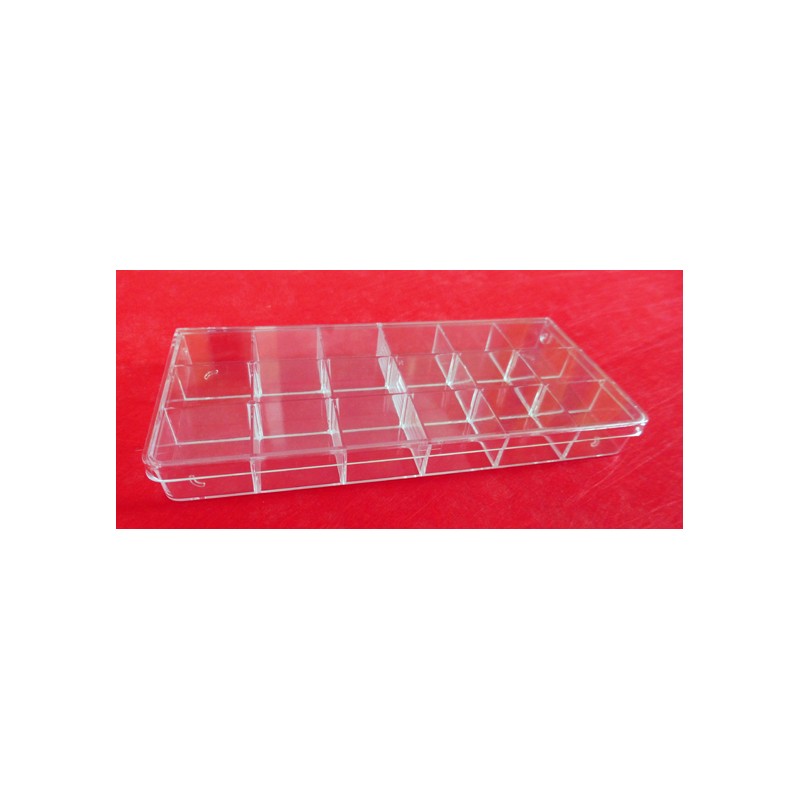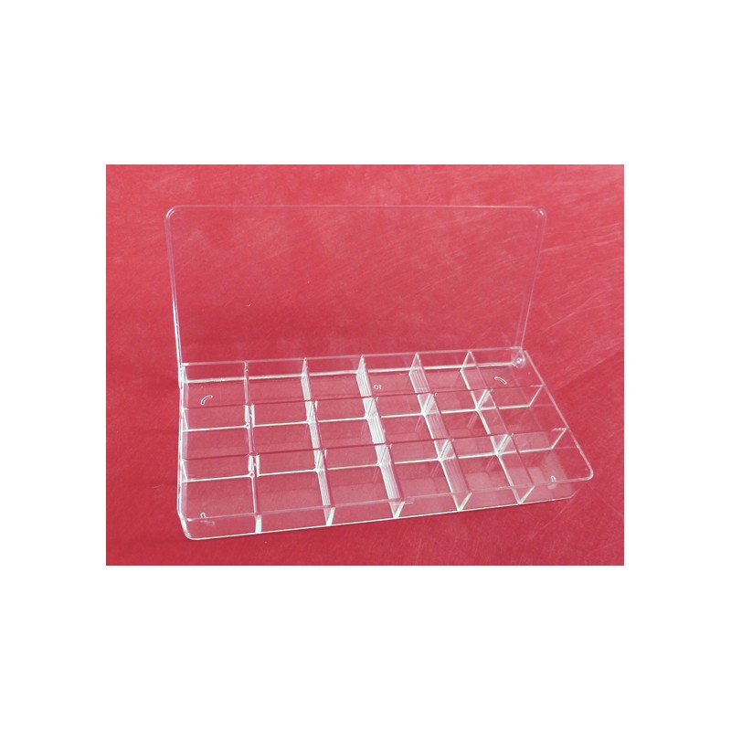Comoda e pratica scatola con 18 scomparti. Perfetta per contenere, esporre, proteggere e trasportare oggetti piccolissimi, grani, perline, componenti vari e minuterie metalliche.
