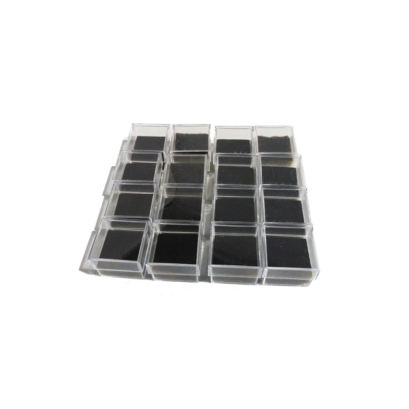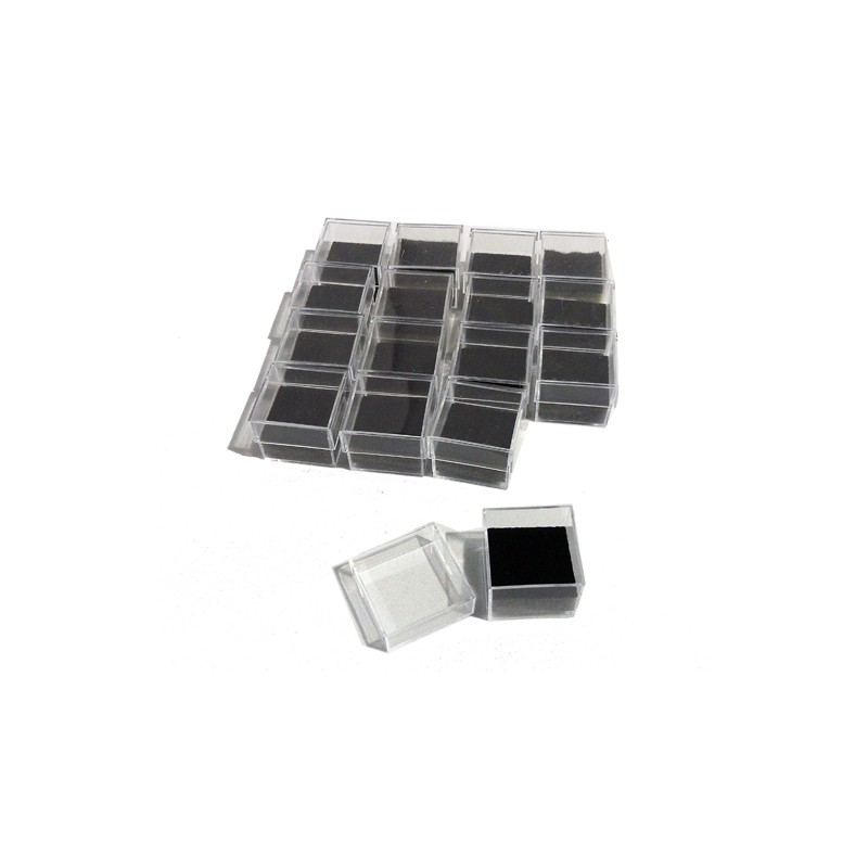 Per contenere piccoli oggetti scatolina in plastica trasparente con feltrino nero 2,8x2,8x2,2 cm