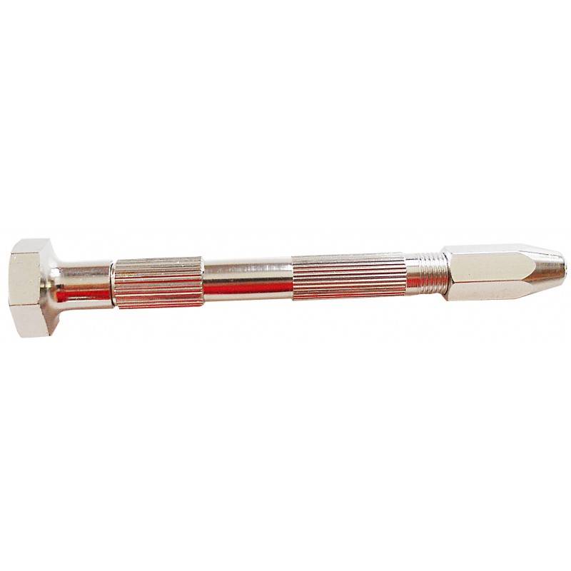 Ha due terminali doppi e la testa rotante. La pinza a vite permette il fissaggio di oggetti molto piccoli. La struttura è in acciaio nichelato. Diametri utili: 0 - 3,2 mm. Lunghezza 100 mm