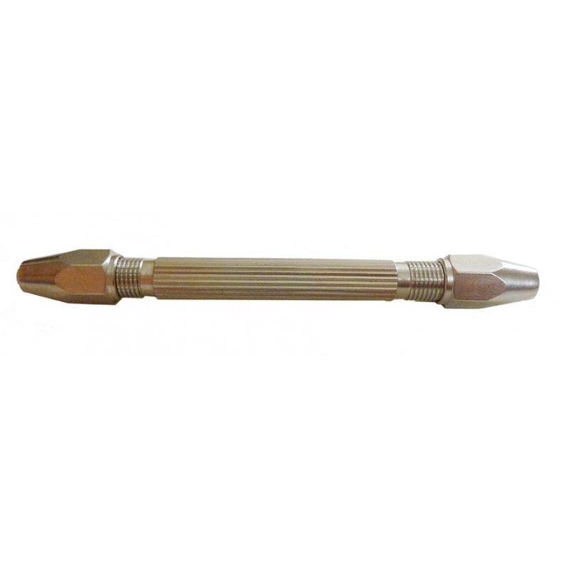 Trapanino manuale in acciaio nichelato. Fornito con 2 mandrini con 2 pinze. Diametro utilizzabile: 0 - 3,2 mm. Lunghezza 100 mm
