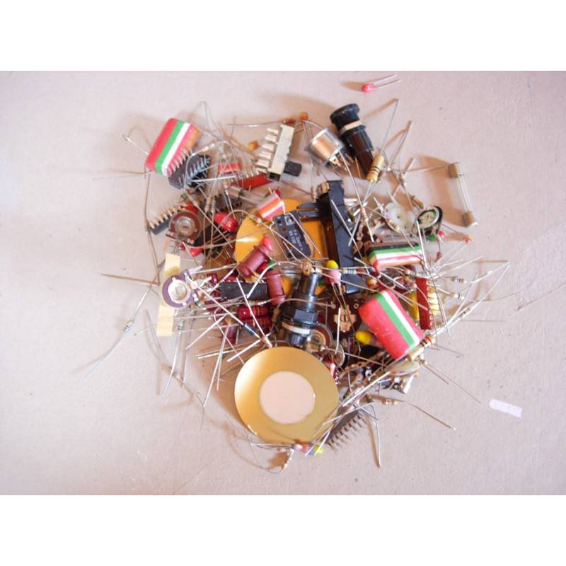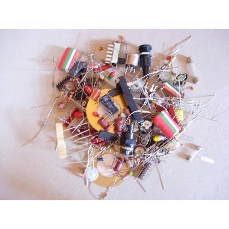 Sacchetto di materiale elettronici misto: resistenze, integrati, potenziometri, minuterie e tanto altro.