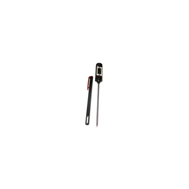 Termometro digitale con sonda in acciaio inox. Display LCD. Range: - 50°C + 300°C. Precisione: +/-1°C. Risoluzione: 0,1°C. Alimentazione 1,5V.